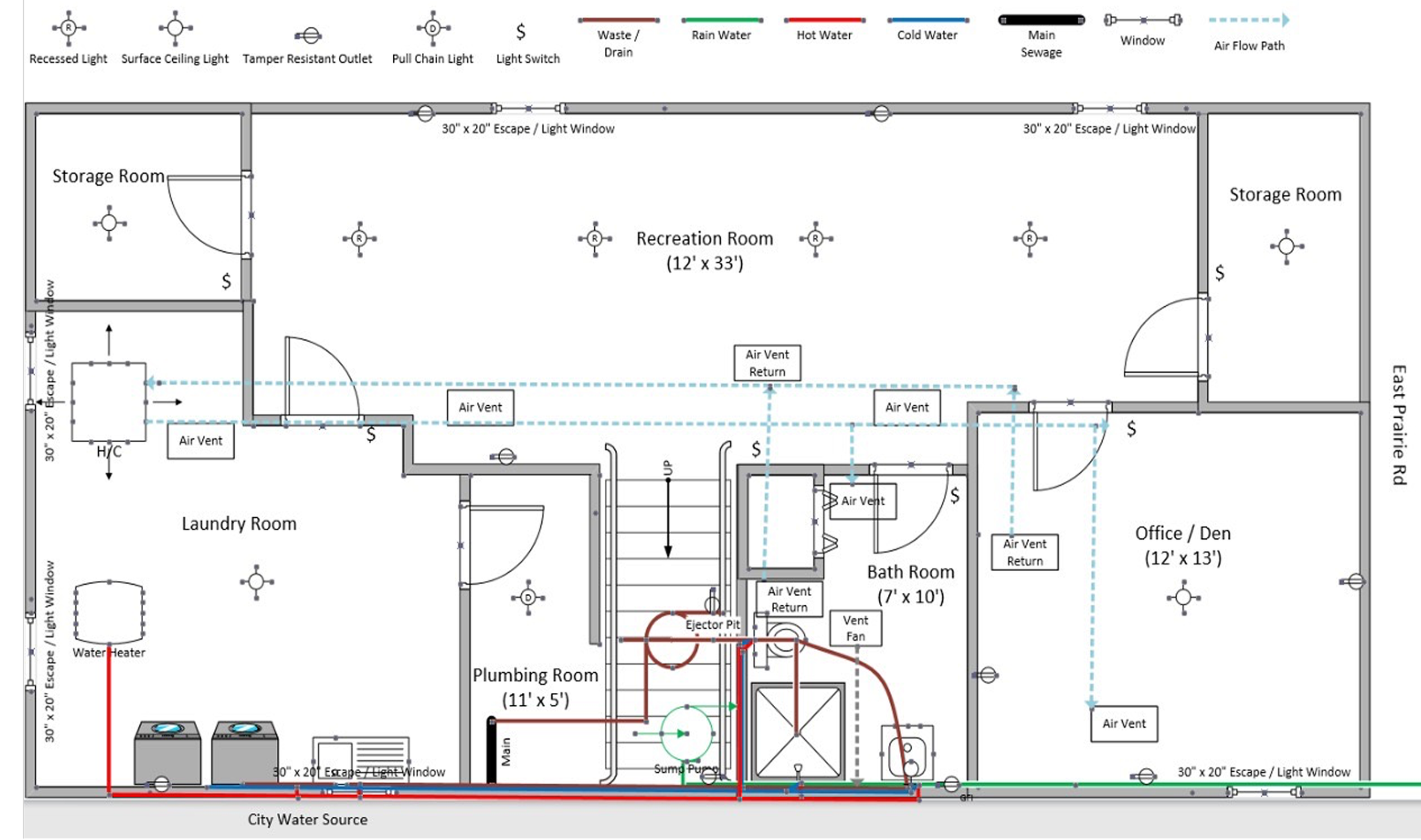 all design aspects, including designing the basement layout, selecting cabinets, countertops,