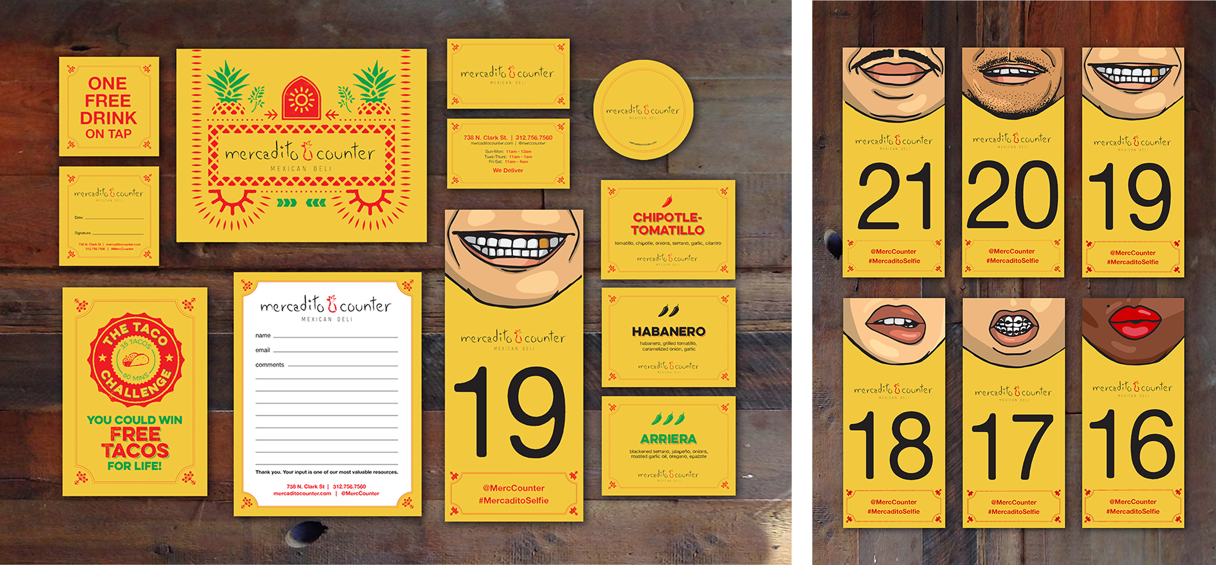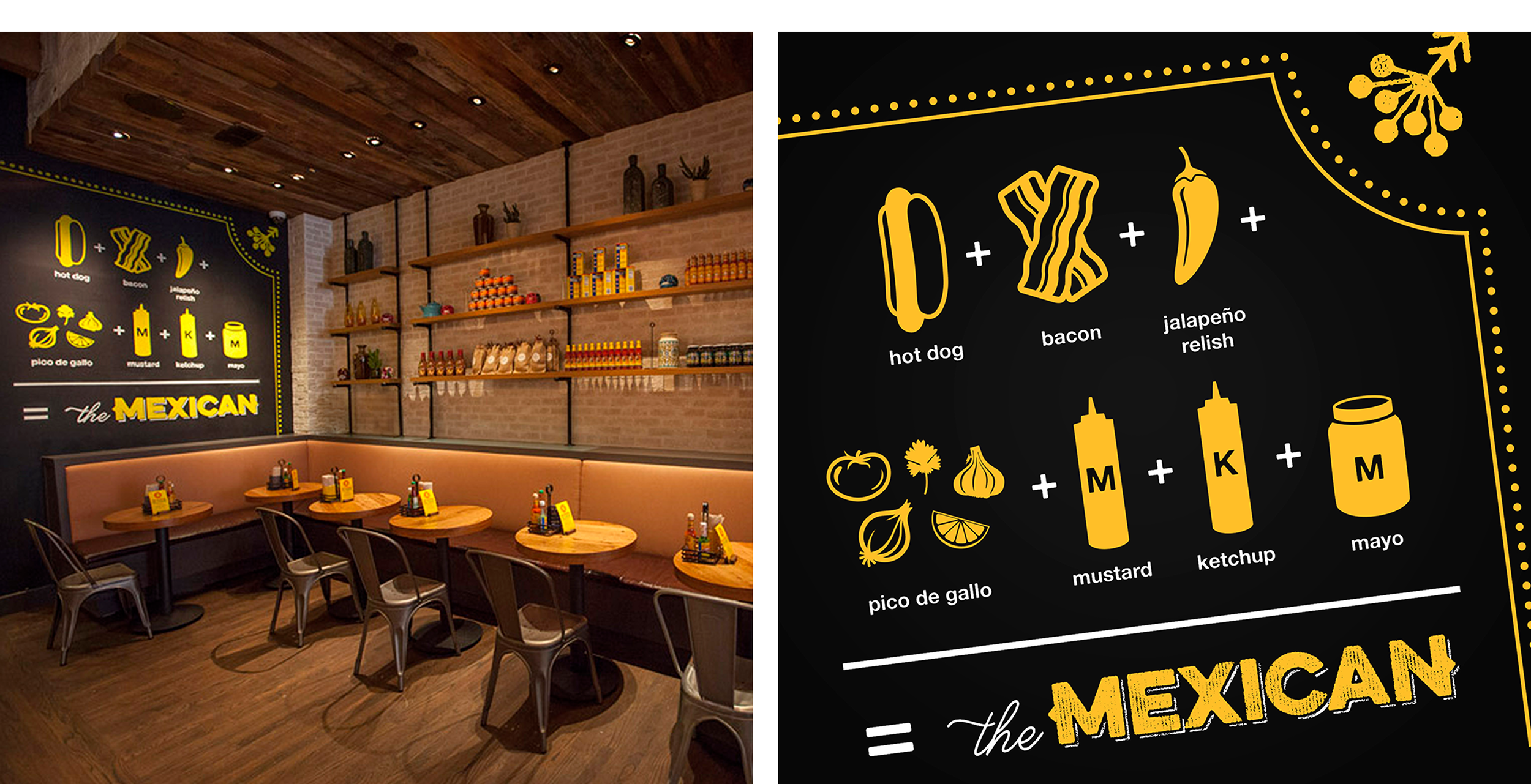 including hand-painted works of art, a custom wall mural, branding materials, uniforms, menus,